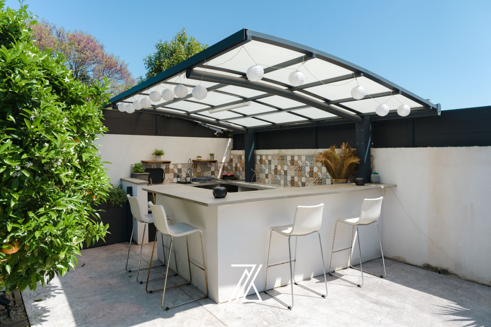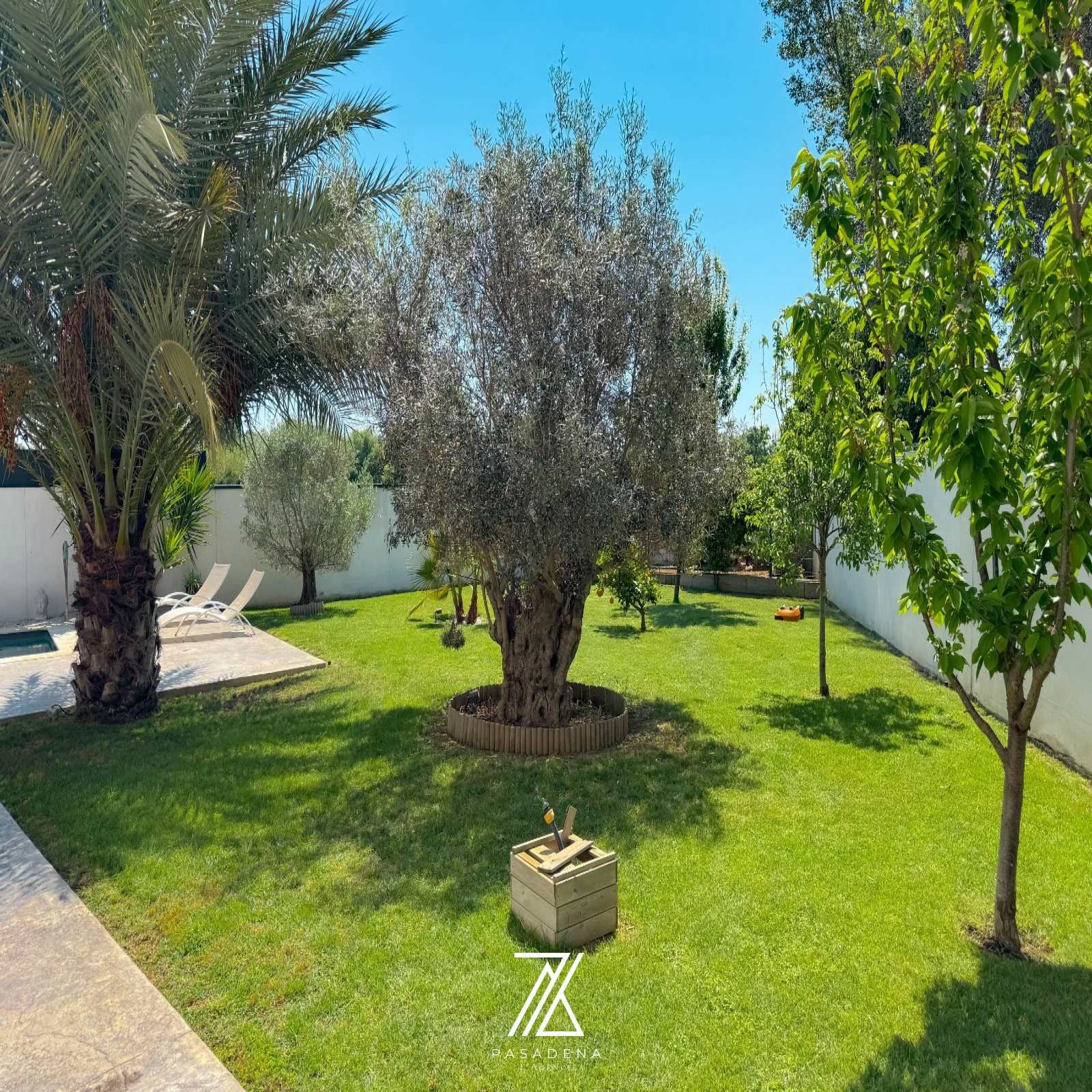 L’ensemble est implanté sur une parcelle de près de 700 m², avec jardin arboré, terrasse et espace piscine.