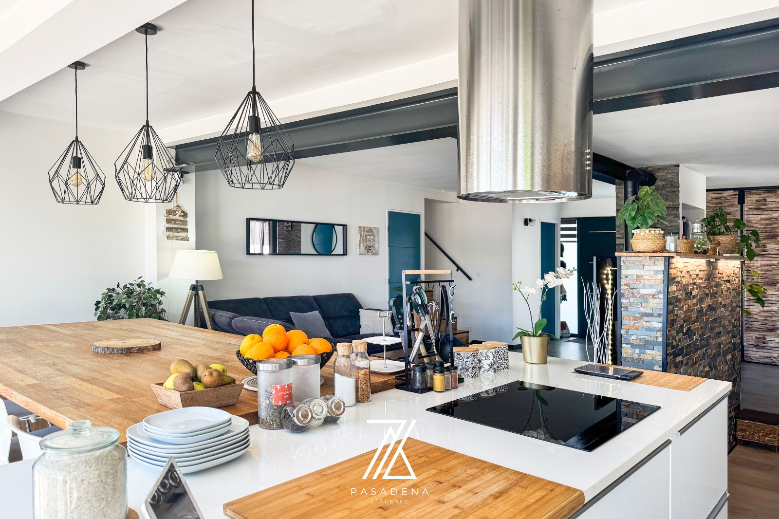 Développant une surface habitable d’environ 170 m2, elle s’ouvre sur un vaste séjour avec cuisine ouverte de plus de 70 m², baigné de lumière grâce à de larges ouvertures sur l’extérieur.